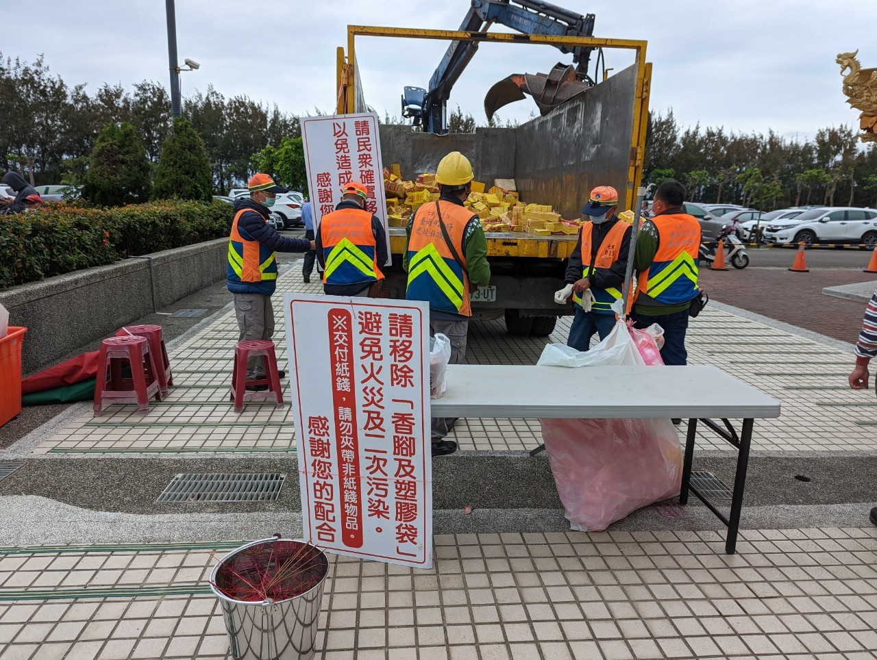 「紙錢集中焚燒」的紙錢,都集中載運至「淨圓滿」紙錢專用焚化爐燒化,至今累積載運量近13,203公噸,市民朋友、廟宇參與率日益增加,近年來平均每年集運量都在1,200公噸以上。環保局指出,紙錢集中燒可削減99%以上的粒狀污染物,大幅減輕環境負荷,民眾有需要請撥打專線06-3354306或向各區清隊申請載運。